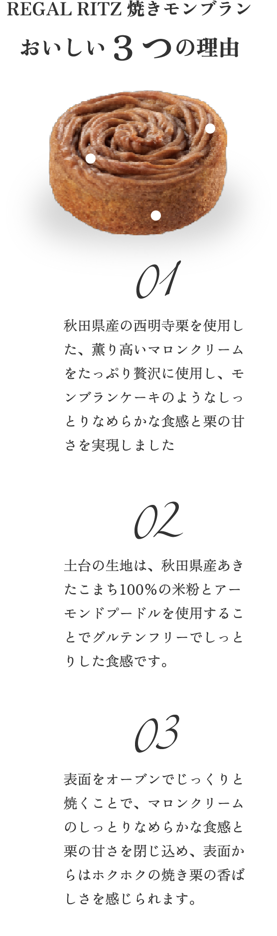 RÉGAL RITZ自慢のグルテンフリーの焼きモンブランです。